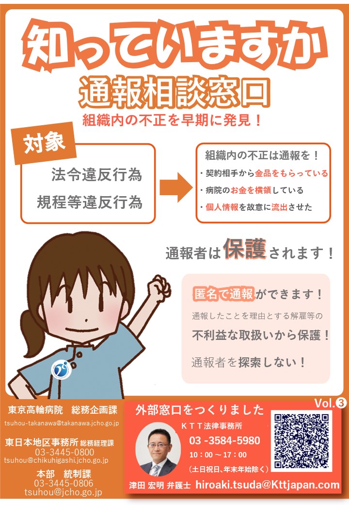 当院における通報相談窓口は、事務部総務企画課です。